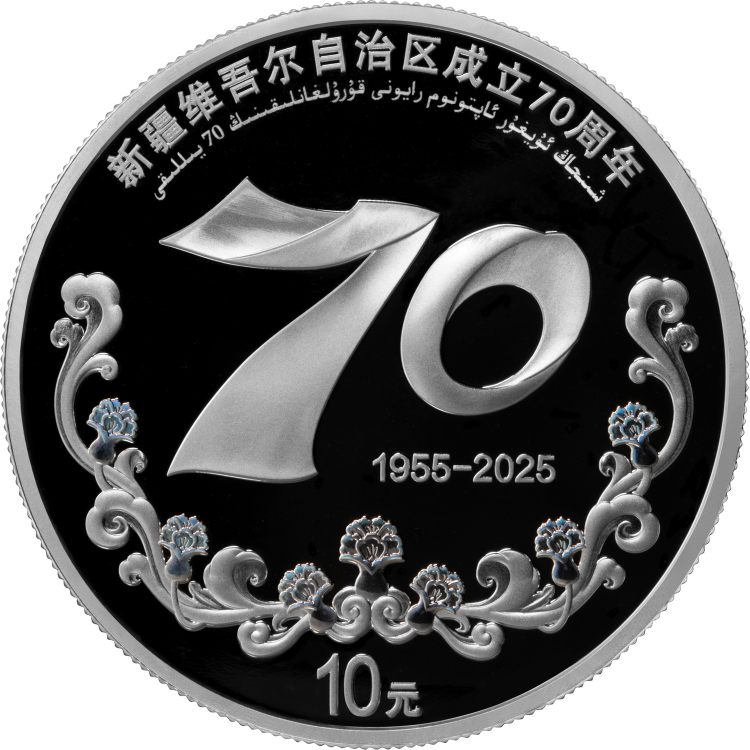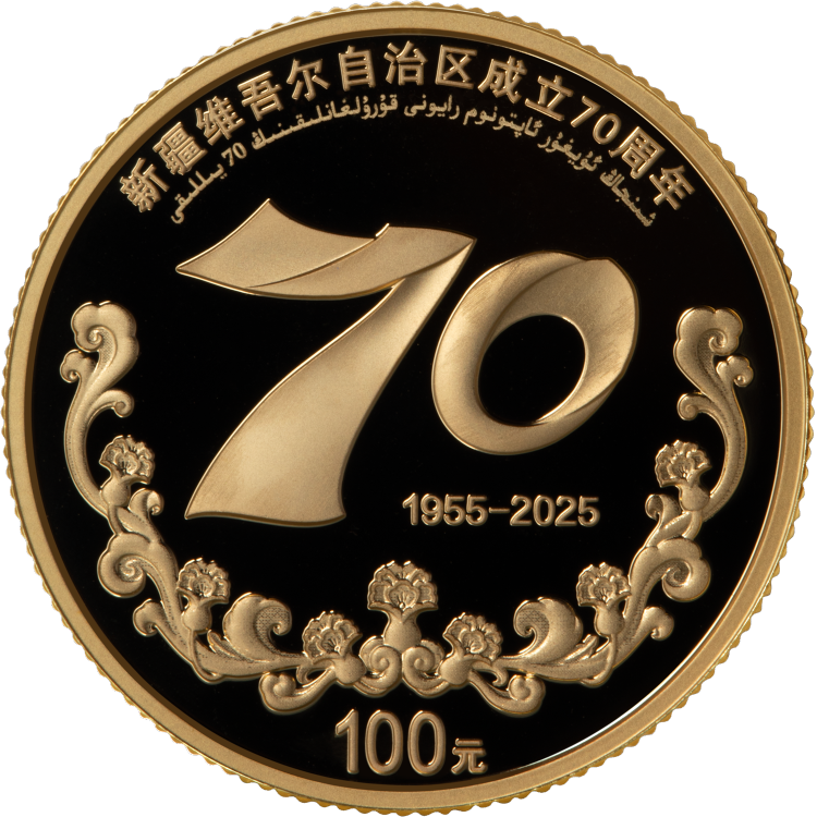 中國人民銀行定於2025年9月19日發行新疆維吾爾自治區成立70周年金銀紀念幣一套。該套金銀紀念幣共2枚,其中金質紀念幣1枚,銀質紀念幣1枚,均為中華人民共和國法定貨幣。