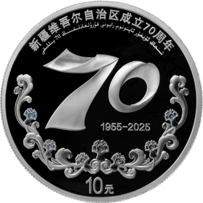 中國人民銀行定於2025年9月19日發行新疆維吾爾自治區成立70周年金銀紀念幣一套。該套金銀紀念幣共2枚,其中金質紀念幣1枚,銀質紀念幣1枚,均為中華人民共和國法定貨幣。